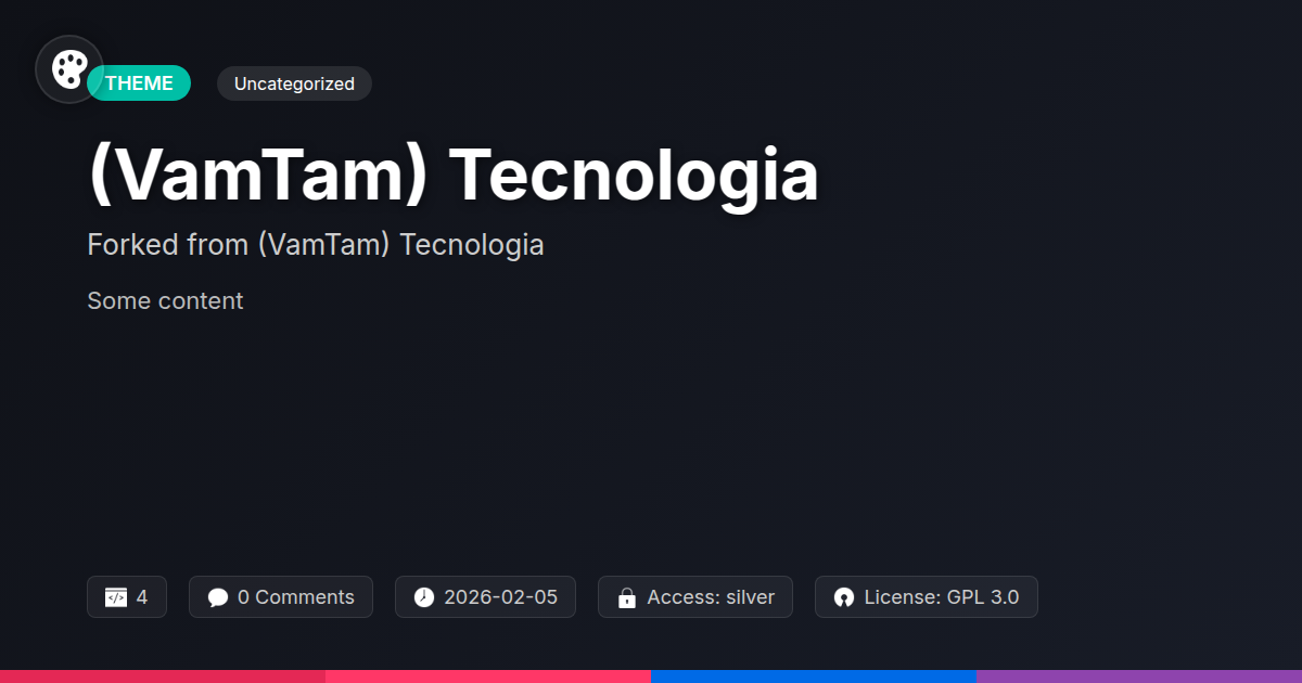 GrootMade is NOT affiliated with (VamTam) Tecnologia or its original author. (VamTam) Tecnologia™ is a trademark of its respective owner and use of it does not imply any endorsement or affiliation. This product has been forked under the GNU General Public License (GPL) and all non-GPL assets (such as proprietary images, fonts, and branding) have been removed. Distributing GPL-licensed code is 100% legal.