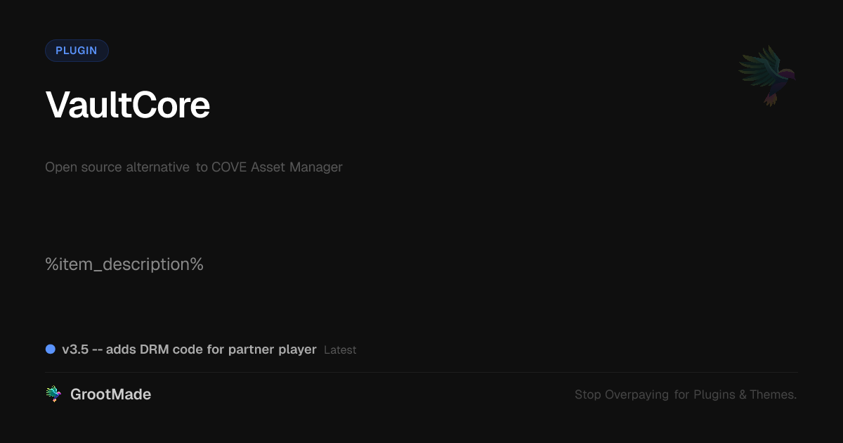 GrootMade is NOT affiliated with COVE Asset Manager or its original author. COVE Asset Manager™ is a trademark of its respective owner and use of it does not imply any endorsement or affiliation. This product has been forked under the GNU General Public License (GPL) and all non-GPL assets (such as proprietary images, fonts, and branding) have been removed. Distributing GPL-licensed code is 100% legal.