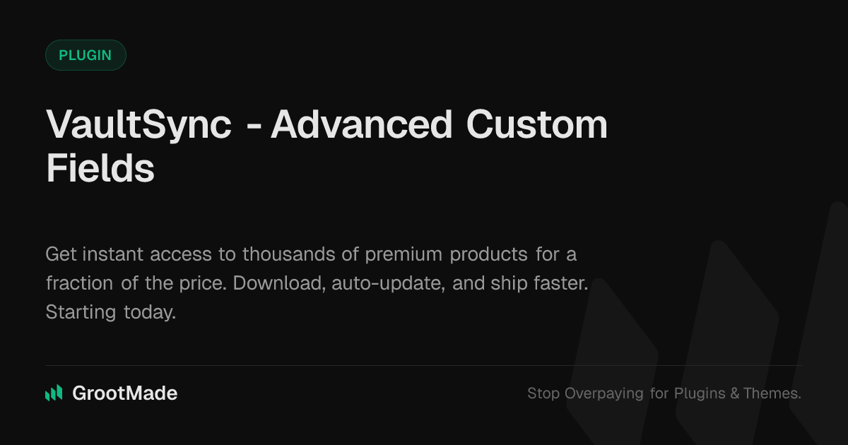 GrootMade is NOT affiliated with WPDM - Advanced Custom Fields or its original author. WPDM - Advanced Custom Fields™ is a trademark of its respective owner and use of it does not imply any endorsement or affiliation. This product has been forked under the GNU General Public License (GPL) and all non-GPL assets (such as proprietary images, fonts, and branding) have been removed. Distributing GPL-licensed code is 100% legal.