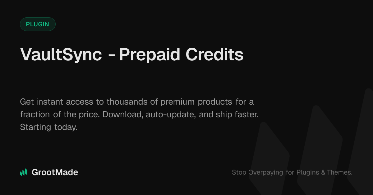 GrootMade is NOT affiliated with WPDM - Prepaid Credits or its original author. WPDM - Prepaid Credits™ is a trademark of its respective owner and use of it does not imply any endorsement or affiliation. This product has been forked under the GNU General Public License (GPL) and all non-GPL assets (such as proprietary images, fonts, and branding) have been removed. Distributing GPL-licensed code is 100% legal.