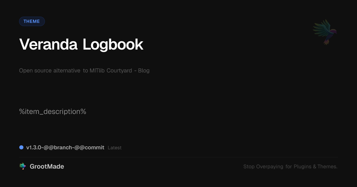 GrootMade is NOT affiliated with MITlib Courtyard - Blog or its original author. MITlib Courtyard - Blog™ is a trademark of its respective owner and use of it does not imply any endorsement or affiliation. This product has been forked under the GNU General Public License (GPL) and all non-GPL assets (such as proprietary images, fonts, and branding) have been removed. Distributing GPL-licensed code is 100% legal.
