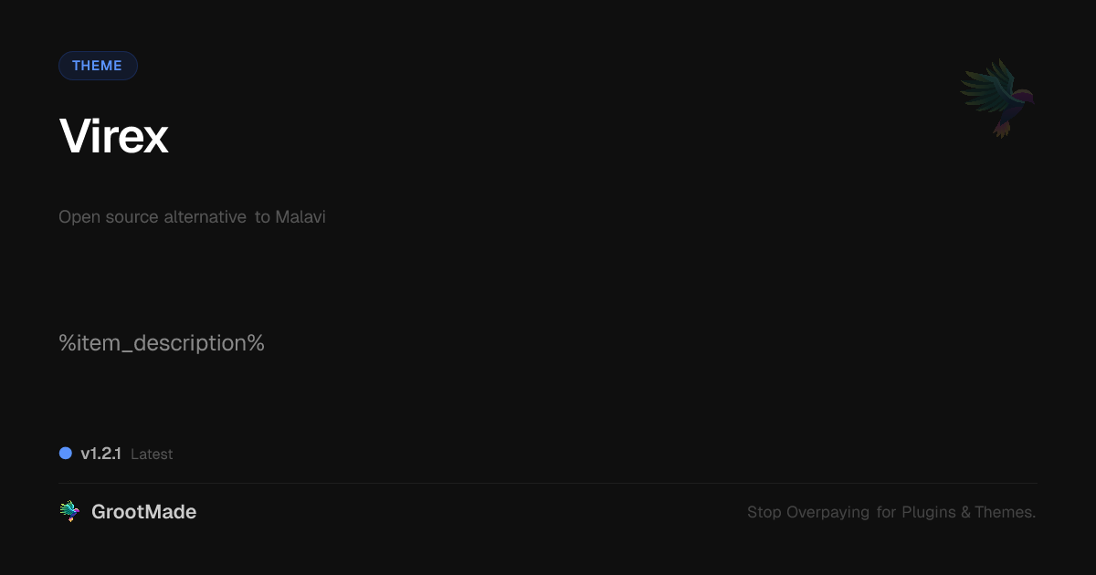 GrootMade is NOT affiliated with Malavi or its original author. Malavi™ is a trademark of its respective owner and use of it does not imply any endorsement or affiliation. This product has been forked under the GNU General Public License (GPL) and all non-GPL assets (such as proprietary images, fonts, and branding) have been removed. Distributing GPL-licensed code is 100% legal.