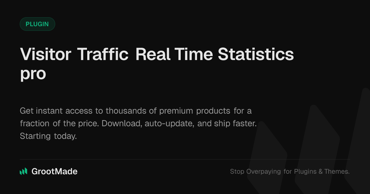 GrootMade is NOT affiliated with Visitor Traffic Real Time Statistics pro or its original author. Visitor Traffic Real Time Statistics pro™ is a trademark of its respective owner and use of it does not imply any endorsement or affiliation. This product has been forked under the GNU General Public License (GPL) and all non-GPL assets (such as proprietary images, fonts, and branding) have been removed. Distributing GPL-licensed code is 100% legal.