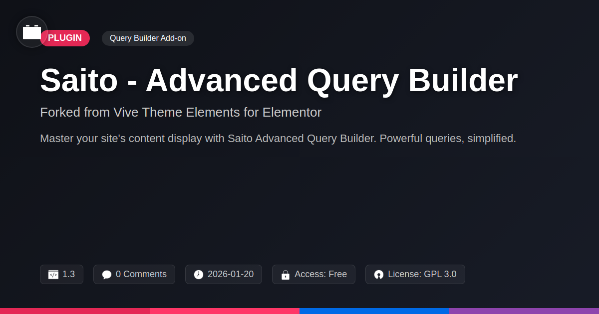 So, there you have it. The seemingly endless quest for a decent way to build custom queries has, dare we say it, been conquered. Saito - Advanced Query Builder, born from a solid lineage and honed with the sharp wit of developers who’ve been there, done that, and probably have a t-shirt for it, is here to save your sanity. No more wrestling with arcane syntax or relying on plugins that feel like they were coded in a dark alley. This isn't just another tool; it's your new favorite sidekick in the epic saga of content display. Whether you’re a lone wolf developer architecting a masterpiece, an agency juggling client demands with the grace of a circus performer, or an open-source evangelist who believes in shared power, Saito speaks your language.
