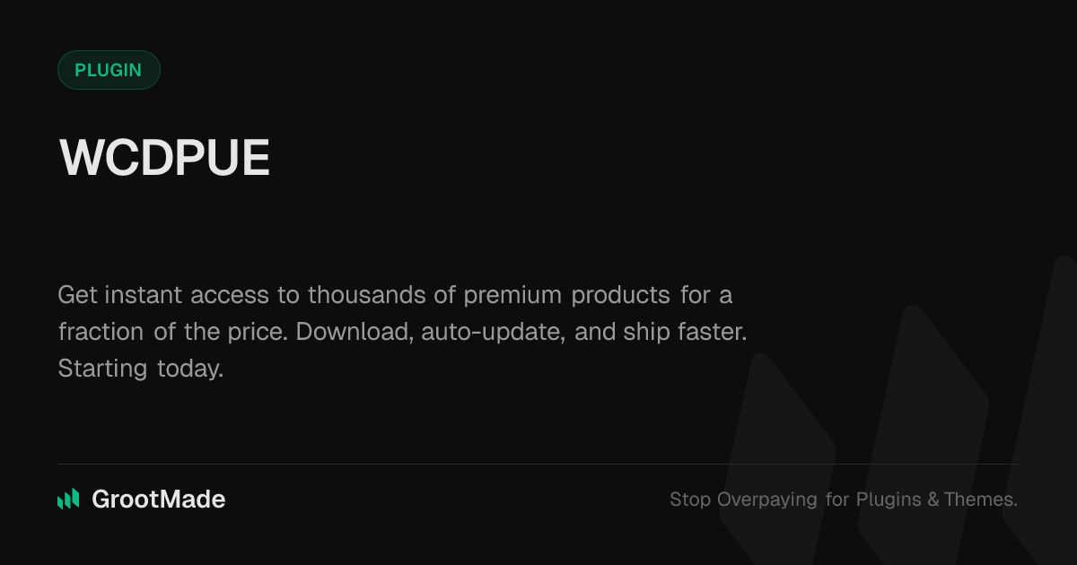GrootMade is NOT affiliated with WCDPUE or its original author. WCDPUE™ is a trademark of its respective owner and use of it does not imply any endorsement or affiliation. This product has been forked under the GNU General Public License (GPL) and all non-GPL assets (such as proprietary images, fonts, and branding) have been removed. Distributing GPL-licensed code is 100% legal.