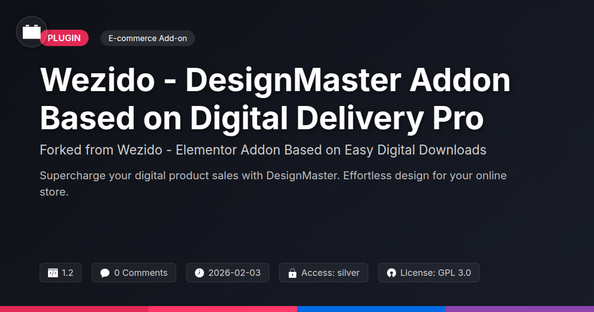 GrootMade is NOT affiliated with Wezido - Elementor Addon Based on Easy Digital Downloads or its original author. Wezido - Elementor Addon Based on Easy Digital Downloads™ is a trademark of its respective owner and use of it does not imply any endorsement or affiliation. This product has been forked under the GNU General Public License (GPL) and all non-GPL assets (such as proprietary images, fonts, and branding) have been removed. Distributing GPL-licensed code is 100% legal.