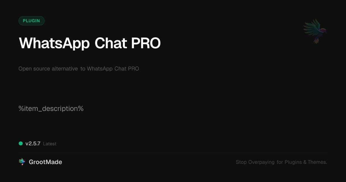 GrootMade is NOT affiliated with WhatsApp Chat PRO or its original author. WhatsApp Chat PRO™ is a trademark of its respective owner and use of it does not imply any endorsement or affiliation. This product has been forked under the GNU General Public License (GPL) and all non-GPL assets (such as proprietary images, fonts, and branding) have been removed. Distributing GPL-licensed code is 100% legal.