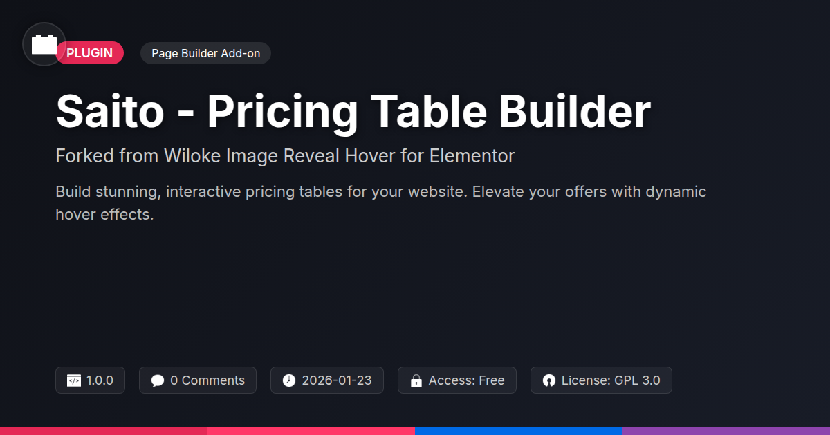 So, there you have it. If you’re still wrestling with pricing tables that look like they were designed in the era of dial-up internet, it’s time for an intervention. Saito - Pricing Table Builder isn't just a facelift for your price pages; it's a strategic overhaul. It takes the best bits of a proven concept, sprinkles it with a generous dose of modern flair, and slaps on an interactive layer that actually makes people want to engage with your offerings. For the code slingers out there, think of it as a meticulously crafted shortcut that lets you focus on the backend magic without sacrificing frontend wow-factor. Agencies, stop selling yourselves short with cookie-cutter solutions; Saito allows you to offer bespoke, high-impact pricing designs that justify your premium rates. And to our beloved open-source pals? You get the beauty of a well-forged tool, continually refined, built on a foundation that respects smart development.