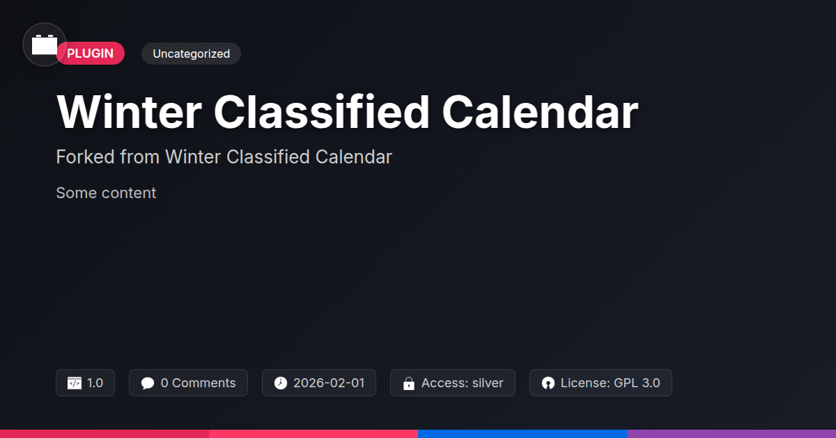 GrootMade is NOT affiliated with Winter Classified Calendar or its original author. Winter Classified Calendar™ is a trademark of its respective owner and use of it does not imply any endorsement or affiliation. This product has been forked under the GNU General Public License (GPL) and all non-GPL assets (such as proprietary images, fonts, and branding) have been removed. Distributing GPL-licensed code is 100% legal.