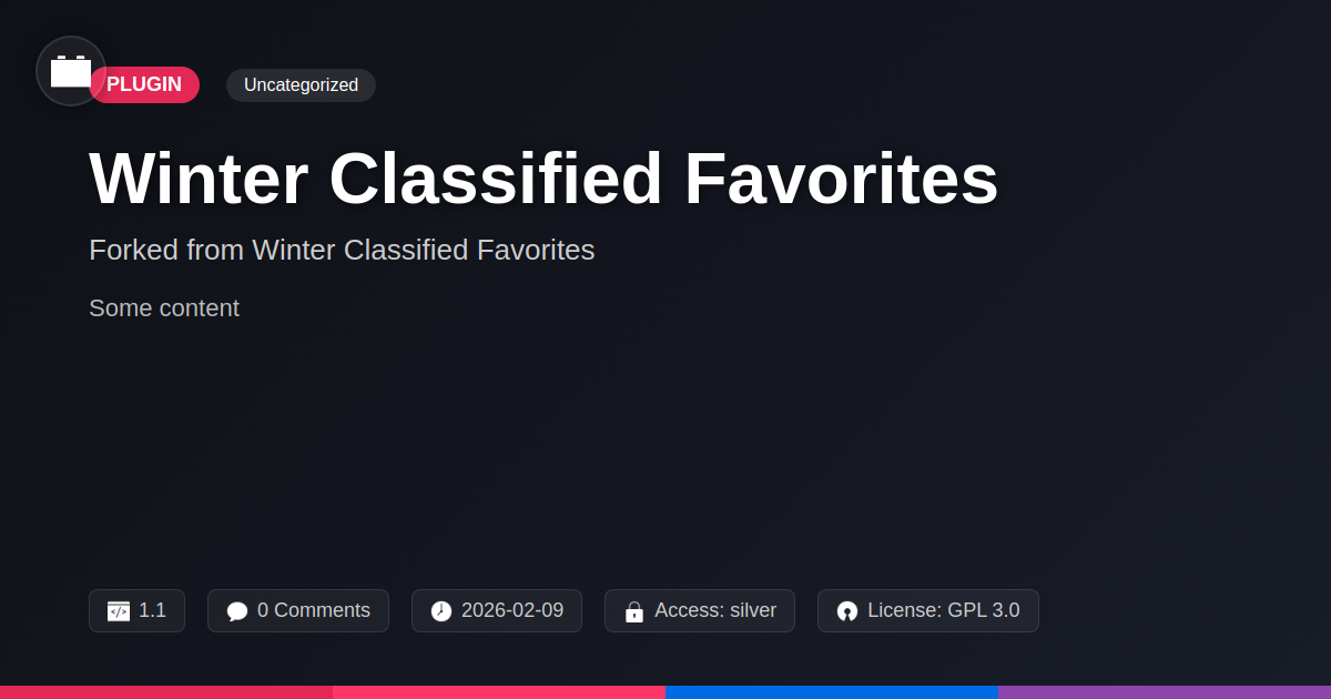 GrootMade is NOT affiliated with Winter Classified Favorites or its original author. Winter Classified Favorites™ is a trademark of its respective owner and use of it does not imply any endorsement or affiliation. This product has been forked under the GNU General Public License (GPL) and all non-GPL assets (such as proprietary images, fonts, and branding) have been removed. Distributing GPL-licensed code is 100% legal.