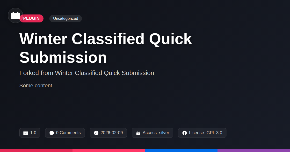 GrootMade is NOT affiliated with Winter Classified Quick Submission or its original author. Winter Classified Quick Submission™ is a trademark of its respective owner and use of it does not imply any endorsement or affiliation. This product has been forked under the GNU General Public License (GPL) and all non-GPL assets (such as proprietary images, fonts, and branding) have been removed. Distributing GPL-licensed code is 100% legal.