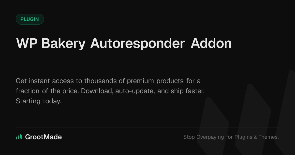 GrootMade is NOT affiliated with WP Bakery Autoresponder Addon or its original author. WP Bakery Autoresponder Addon™ is a trademark of its respective owner and use of it does not imply any endorsement or affiliation. This product has been forked under the GNU General Public License (GPL) and all non-GPL assets (such as proprietary images, fonts, and branding) have been removed. Distributing GPL-licensed code is 100% legal.