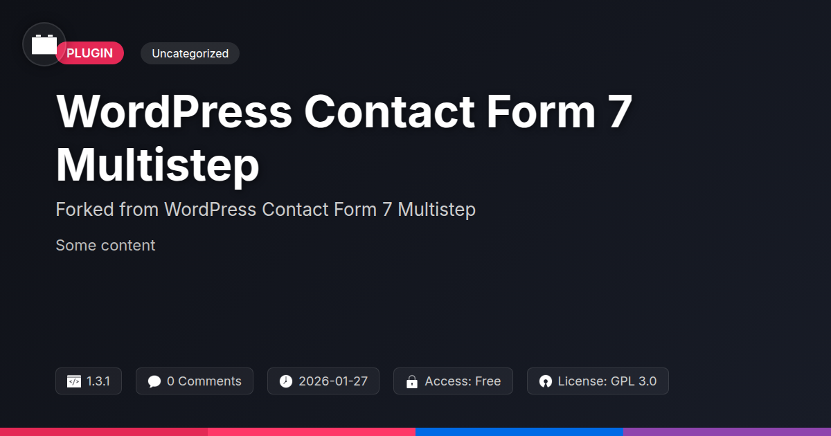 GrootMade is NOT affiliated with WordPress Contact Form 7 Multistep or its original author. WordPress Contact Form 7 Multistep™ is a trademark of its respective owner and use of it does not imply any endorsement or affiliation. This product has been forked under the GNU General Public License (GPL) and all non-GPL assets (such as proprietary images, fonts, and branding) have been removed. Distributing GPL-licensed code is 100% legal.