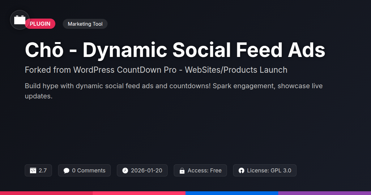So, there you have it. Your website doesn't have to be a digital museum of a bygone era. With Chō - Dynamic Social Feed Ads, you’re not just adding a plugin; you’re infusing your online presence with the energy and relevance of your social conversations. For developers, this means fewer tedious tasks and more time to focus on the next big idea (or just enjoy a well-deserved coffee break). For agencies, it's a powerful tool to delight clients with dynamic, engaging websites that showcase real-time social proof – a selling point that's hard to ignore. And for the open-source enthusiasts, it’s a testament to how collaborative development can lead to robust, refined tools that benefit everyone. Imagine a product launch where the excitement builds visually on your homepage through live social chatter, or a website that constantly refreshes its content with your latest updates, making visitors want to stick around longer. This isn't rocket science; it's smart, effective digital strategy made accessible. Stop letting your social media efforts exist in a separate silo. Bring them home to your website and let them work their magic. It’s time to make your site as dynamic and engaging as your brand deserves. Go ahead, give it a spin. Your website (and your audience) will thank you for it.