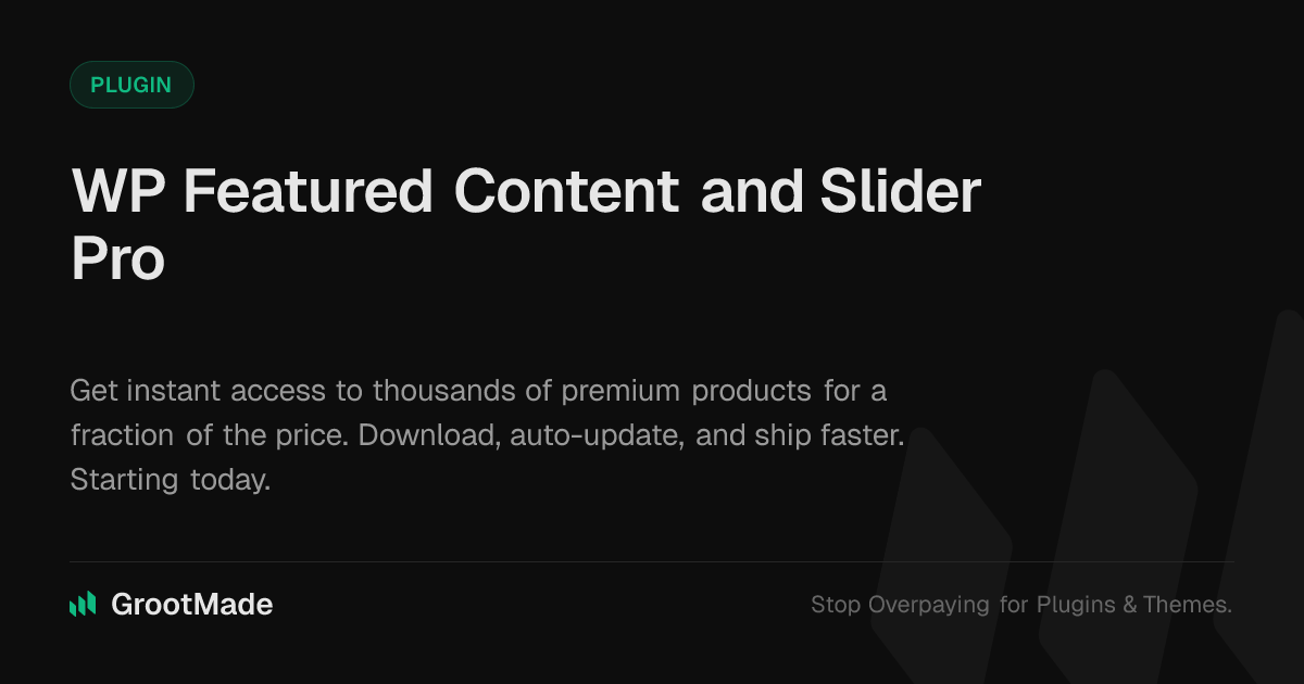 GrootMade is NOT affiliated with WP Featured Content and Slider Pro or its original author. WP Featured Content and Slider Pro™ is a trademark of its respective owner and use of it does not imply any endorsement or affiliation. This product has been forked under the GNU General Public License (GPL) and all non-GPL assets (such as proprietary images, fonts, and branding) have been removed. Distributing GPL-licensed code is 100% legal.