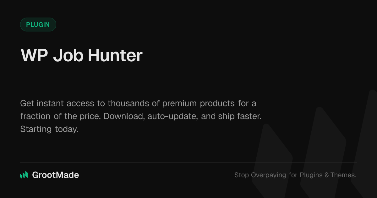 GrootMade is NOT affiliated with WP Job Hunter or its original author. WP Job Hunter™ is a trademark of its respective owner and use of it does not imply any endorsement or affiliation. This product has been forked under the GNU General Public License (GPL) and all non-GPL assets (such as proprietary images, fonts, and branding) have been removed. Distributing GPL-licensed code is 100% legal.