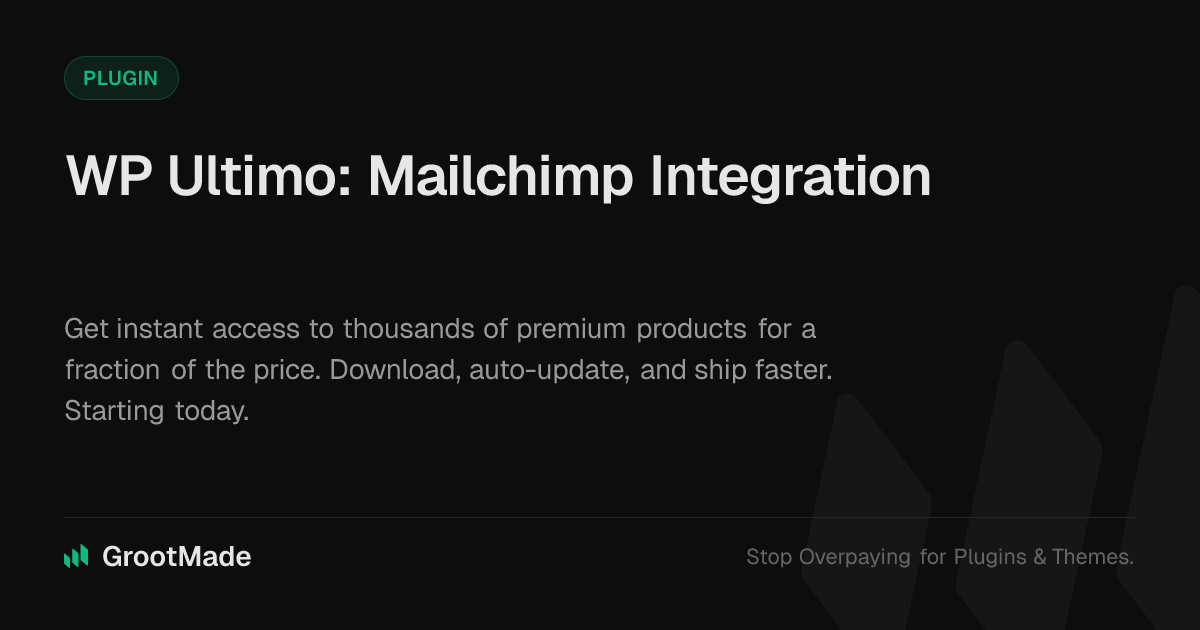 GrootMade is NOT affiliated with WP Ultimo: Mailchimp Integration or its original author. WP Ultimo: Mailchimp Integration™ is a trademark of its respective owner and use of it does not imply any endorsement or affiliation. This product has been forked under the GNU General Public License (GPL) and all non-GPL assets (such as proprietary images, fonts, and branding) have been removed. Distributing GPL-licensed code is 100% legal.