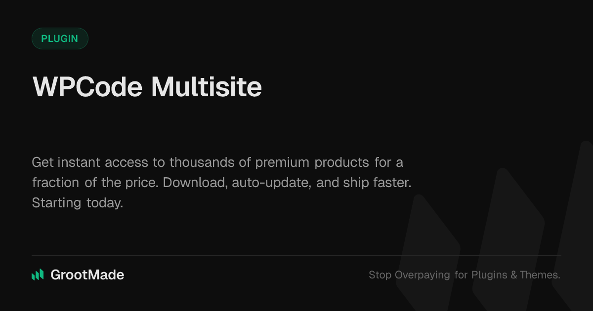 GrootMade is NOT affiliated with WPCode Multisite or its original author. WPCode Multisite™ is a trademark of its respective owner and use of it does not imply any endorsement or affiliation. This product has been forked under the GNU General Public License (GPL) and all non-GPL assets (such as proprietary images, fonts, and branding) have been removed. Distributing GPL-licensed code is 100% legal.