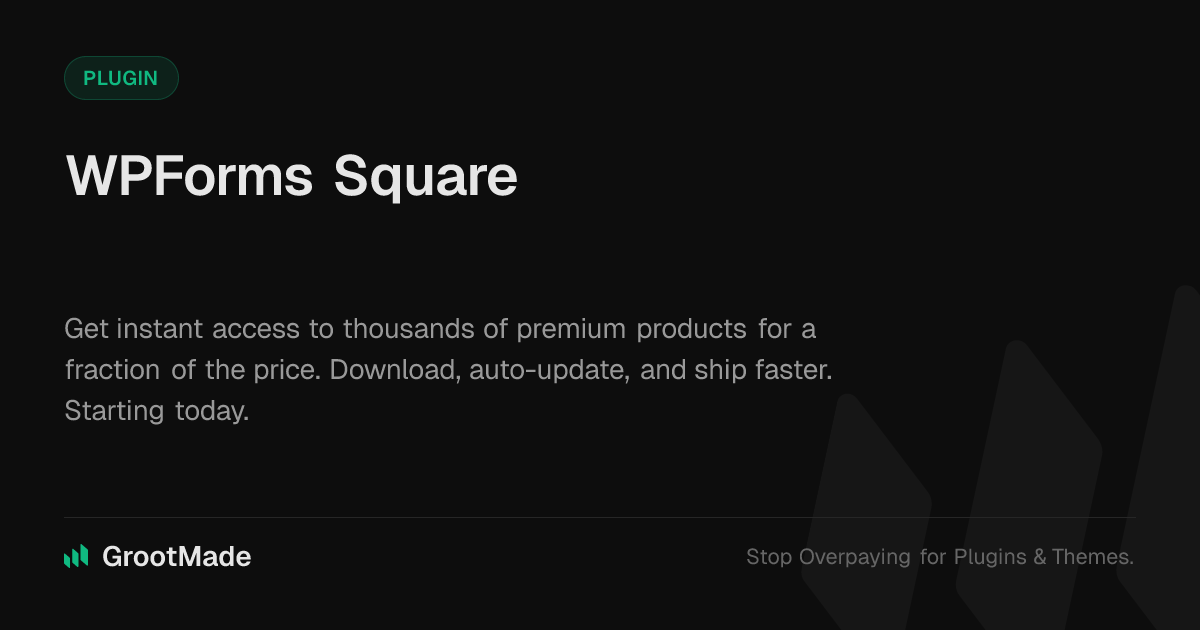 GrootMade is NOT affiliated with WPForms Square or its original author. WPForms Square™ is a trademark of its respective owner and use of it does not imply any endorsement or affiliation. This product has been forked under the GNU General Public License (GPL) and all non-GPL assets (such as proprietary images, fonts, and branding) have been removed. Distributing GPL-licensed code is 100% legal.