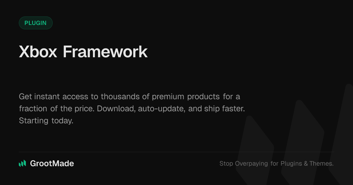 GrootMade is NOT affiliated with Xbox Framework or its original author. Xbox Framework™ is a trademark of its respective owner and use of it does not imply any endorsement or affiliation. This product has been forked under the GNU General Public License (GPL) and all non-GPL assets (such as proprietary images, fonts, and branding) have been removed. Distributing GPL-licensed code is 100% legal.