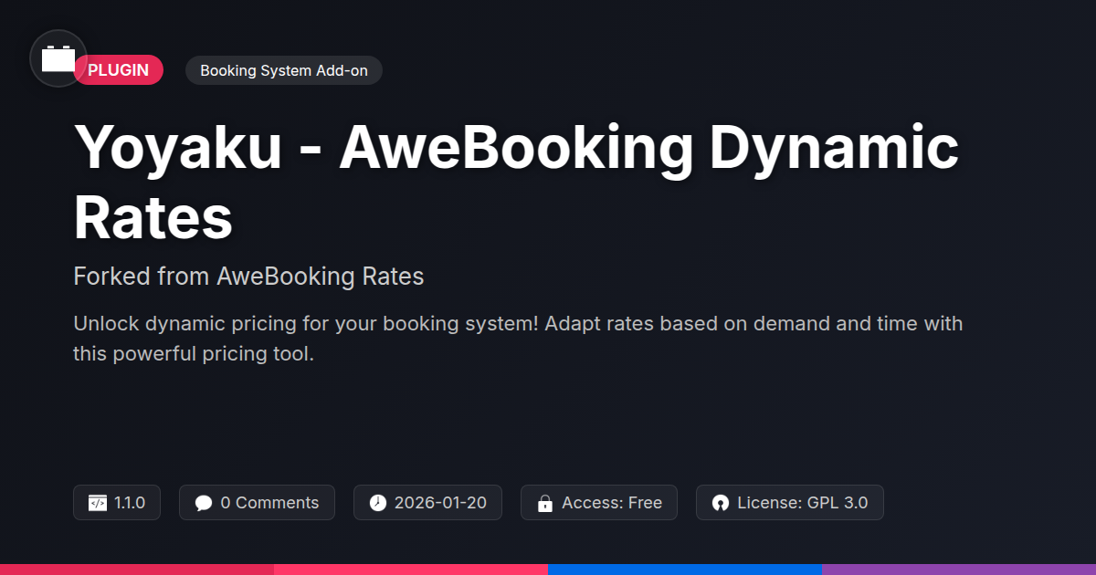 So there you have it. If you're tired of your booking system treating pricing like a rigid, unimaginative monolith – a relic from a bygone era of dial-up internet and flip phones – then Yoyaku - AweBooking Dynamic Rates is your digital defibrillator. We've navigated the often-unfunny world of static pricing, showcased the cleverness of a system that actually thinks, and highlighted the tangible perks for those who build and manage online experiences. It’s not about replacing your system with another headache; it’s about upgrading it to a state of intelligent, revenue-generating zen. For the developers out there who appreciate elegant code and the sheer joy of watching something work perfectly, this is your new playground. For the agencies striving to deliver maximum value and ROI for their clients, this is your secret weapon. And for the open-source aficionados who believe in the power of shared innovation, this is a testament to what can be achieved when good foundations are built upon and adapted. Don't let your booking site be the digital equivalent of a beige office cubicle; give it the dynamism it deserves. Stop letting your pricing decisions feel like pulling teeth and start automating your way to a smoother, more profitable operation. It’s time to embrace the future of bookings, one dynamic rate at a time. Your clients, and your sanity, will thank you.
