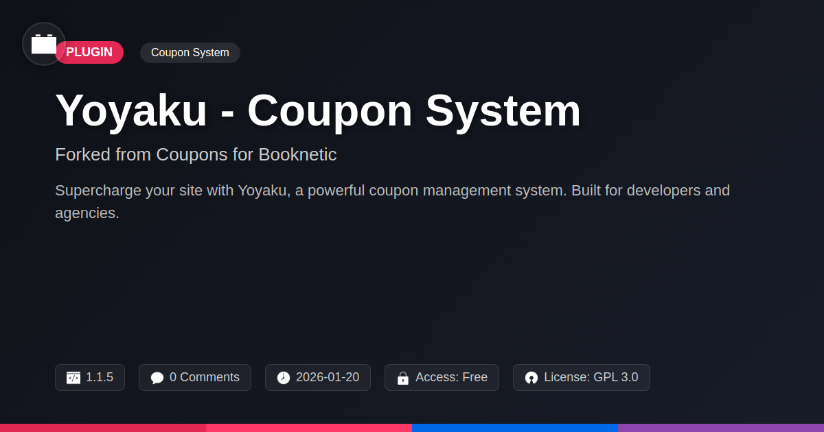 Tired of flimsy discount codes that vanish faster than your sanity during a client deadline? Are you a developer who secretly enjoys building backend magic, but wishes you had a slicker way to dole out those sweet, sweet deals? Or perhaps you're an open-source evangelist who believes the best tools should be shared, like a secret stash of artisanal coffee beans? Well, strap in, buttercup, because we've got something that might just make your day significantly less… chaotic. You've probably wrestled with fragmented solutions, cobbling together makeshift systems that feel more like a Rube Goldberg machine than a robust coupon manager. That gut-wrenching feeling when a discount code just doesn't apply, or worse, applies to everything? Yeah, we know it. This isn't just another plugin; it's a fork, a re-imagining, a declaration of independence from the mundane. Born from a desire to offer something powerful, flexible, and blessedly free from unnecessary bloat, it's here to inject some serious charm and functionality into your coupon game. Prepare yourself for a tool designed by folks who get your pain points, who appreciate a good codebase, and who believe that managing discounts shouldn't require a PhD in arcane wizardry.