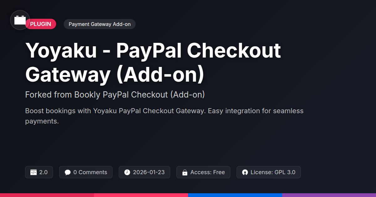 So, there you have it. You’ve navigated the sometimes-murky waters of booking system integrations and emerged with a clear understanding of why the Yoyaku - PayPal Checkout Gateway (Add-on) is more than just another line of code; it’s a strategic advantage. For the lone developer burning the midnight oil, it’s a way to reclaim precious hours and banish the dreaded 'payment failed' email storm. For the agency owner, it’s about delivering a polished, professional experience that keeps clients coming back for more, without the constant nagging worry of transaction hiccups. And for the open-source aficionados among us, it’s a testament to the power of collaborative development, a solid fork that respects its lineage while forging its own path to reliability.