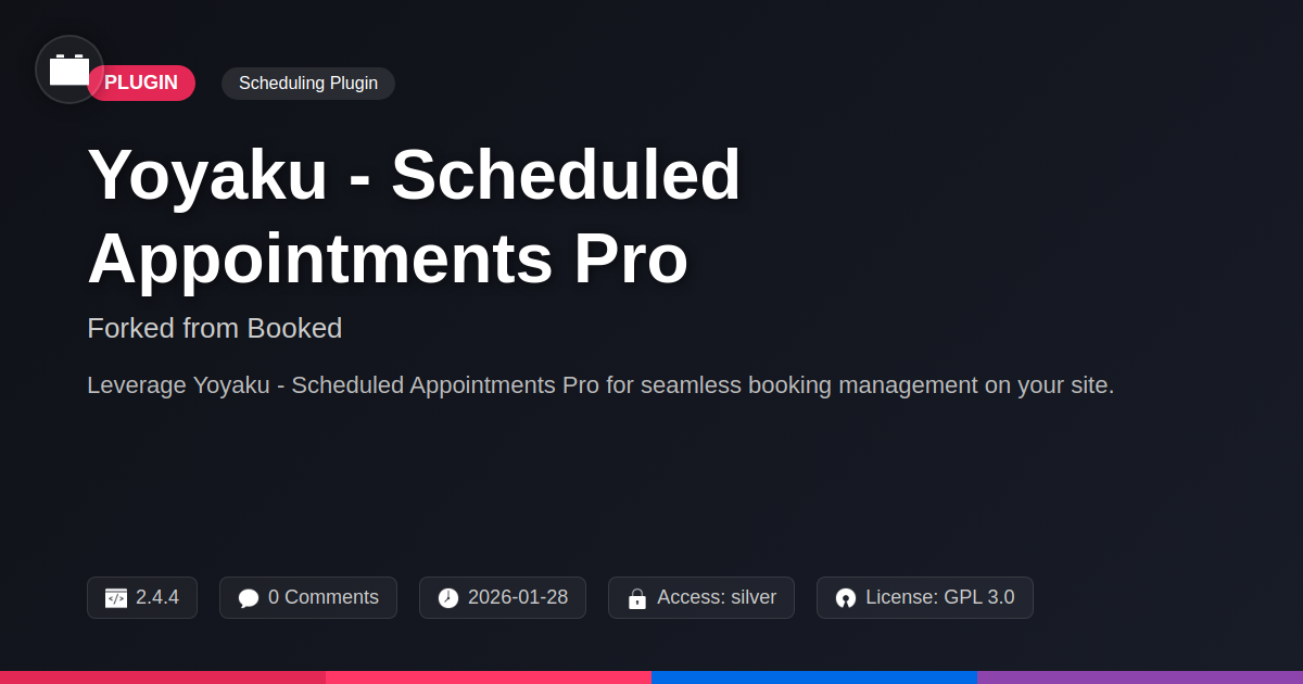 Tired of playing phone tag or drowning in spreadsheets just to book a simple appointment? Do your clients appreciate the convenience of online booking, but your current system feels like it was built in the dial-up era? If you're a developer, an agency wrangling multiple client sites, or an open-source enthusiast who just wants things to work without losing sleep over proprietary locks, then you've probably asked yourself: "Is there a scheduling solution that doesn't require a second mortgage or a degree in astrophysics to configure?" Enter Yoyaku - Scheduled Appointments Pro, a meticulously crafted fork of a beloved scheduling plugin. We've taken a proven foundation and polished it, tweaked it, and armed it with features that developers and discerning site owners crave. Forget the clunky interfaces and the limitations that make you want to pull your hair out. This is about smooth, reliable, and developer-friendly appointment management that scales with your ambition. Ready to stop wrestling with your booking system and start booking clients? We thought so.