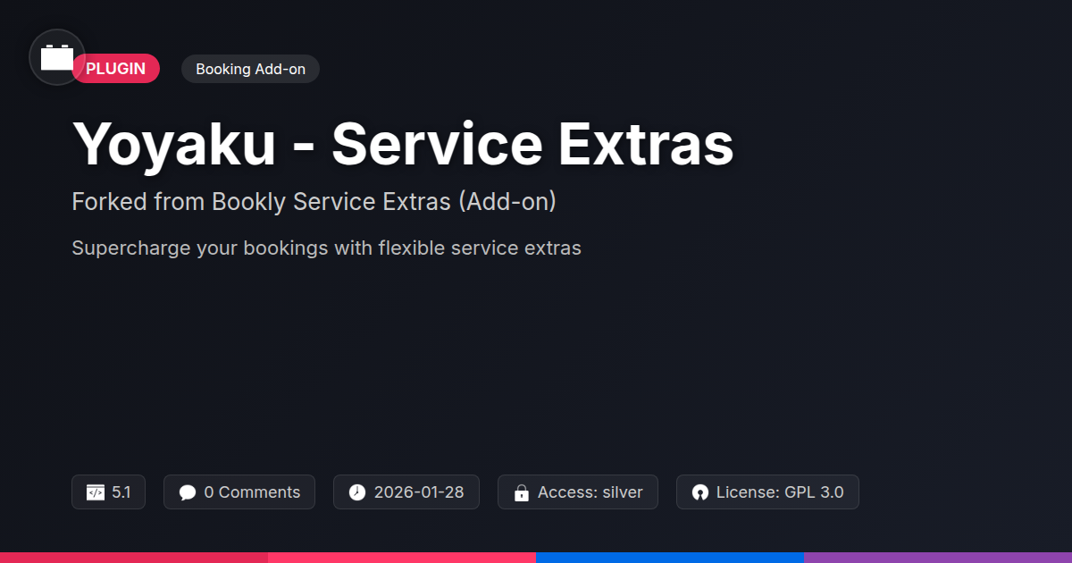 So, there you have it. Yoyaku - Service Extras & Add-ons isn't here to mess around. It's the robust, flexible, and frankly, quite clever solution for anyone who's ever looked at their booking system and thought, 'This could be doing more. A LOT more.' For the developers among us, you know the value of a solid foundation, and forked from a well-respected source, this add-on offers just that – stability with room to grow. Agencies, imagine the upsell opportunities you can now create for your clients, making their booking journeys richer and, let's be real, more profitable. And for the open-source purists, you get the beauty of enhanced functionality without being locked into some proprietary black box. It’s about empowering you to build better, more engaging booking experiences. No more feeling like you're giving clients the express lane to mediocre. With Yoyaku, you're offering them the VIP treatment, complete with express boarding, complimentary snacks, and a personal concierge. It’s the kind of feature-rich add-on that makes you wonder how you ever managed without it. So, ditch the limitations, embrace the power, and start offering booking extras that don't just fill a slot, but enhance the entire experience. Your clients will thank you, and your bottom line will probably send you a postcard.
