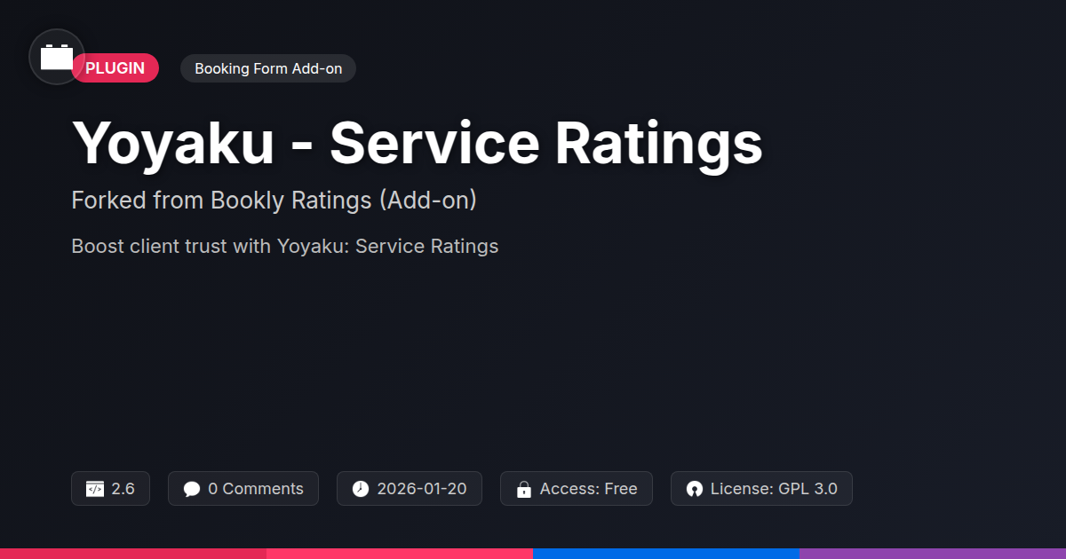 So, there you have it. You're not just installing a plugin; you're investing in the very fabric of your client relationships. We’ve navigated the often-bewildering world of online feedback, dissecting why those little star ratings and lengthy comments are more than just digital confetti – they’re the currency of trust in today’s service economy. You’ve seen how Yoyaku - Service Ratings & Reviews, built on a robust foundation, acts as your tireless advocate, silently working to amplify your successes and highlight areas for growth. Forget that nagging feeling of 'are we good enough?' or the dreaded silence after an appointment. This add-on turns potential clients into eager advocates and provides you with the unfiltered truth to actually become better. For the developers slaving away in the trenches, the agencies juggling multiple clients, and the open-source aficionados who appreciate a well-crafted, transparent tool – this is your opportunity to elevate your game. It’s about transforming your booking system from a mere transactional tool into a strategic asset. Ready to stop guessing and start knowing? That stellar client experience isn't just aspirational; it's measurable, actionable, and now, thanks to Yoyaku, beautifully integrated. Go forth and gather those reviews – your future self (and your clients) will thank you.