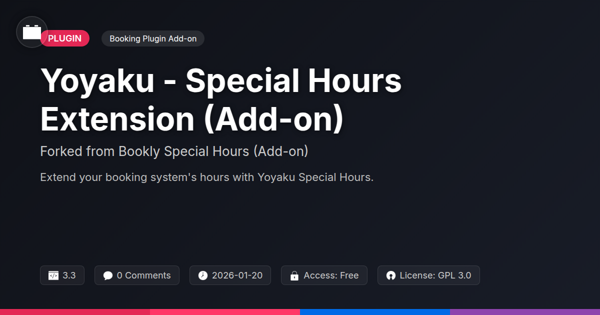 So there you have it, folks. If your current booking system feels like a straitjacket designed by a committee with a penchant for spreadsheets and Monday mornings, it's time to liberate yourself. Yoyaku - Special Hours Extension isn't just an add-on; it's your get-out-of-jail-free card from the rigid confines of standard scheduling. We’ve seen how it can banish the headaches of inflexible calendars and empower you to reflect your actual business operations, not some imaginary ideal. For the developers and agencies out there, this is a chance to slash development time, impress clients with sophisticated scheduling features, and reclaim those precious hours you’d otherwise spend wrangling code. And for the open-source aficionados, it’s a beautiful example of how building on strong foundations can lead to even more refined, user-centric tools. Think of it: no more apologetic emails about 'system limitations,' no more frantic calls to client support, and definitely no more pretending that Tuesday is your 'off-day' when it's really just 'catch-up-on-emails-while-wearing-pajamas' day. Yoyaku lets you communicate your true availability, making booking a breeze for your clients and a dream for your admin team. So, if you’re tired of systems that dictate your business and ready for one that works for you, it’s time to explore the possibilities. Embrace the flexibility, take control, and let your booking system finally be as unique as your business.