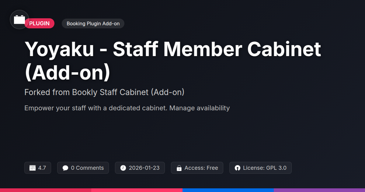 So, there you have it. We've journeyed through the often-treacherous landscape of staff scheduling, poked fun at the sticky notes and the ear-splitting phone calls, and finally arrived at a destination that promises sanity: the Yoyaku Staff Member Cabinet. For the developers and agency owners out there who've ever stared blankly at a spreadsheet that looks more like abstract art than a schedule, this add-on is your digital hero. It’s not just about managing appointments; it’s about giving your team the tools they need to be masters of their own time, and in doing so, giving you back your peace of mind. Imagine a world where your staff doesn't have to play phone tag to confirm a booking, where they can update their availability with a few clicks, and where double-bookings become a relic of the past. That's the power we're talking about. This add-on is built on the solid foundation of a proven booking system, but it elevates the staff experience to a whole new level. It’s designed with you, the pragmatic implementer, in mind – robust, flexible, and, dare we say, even a little bit elegant. No more wrestling with clunky interfaces or deciphering cryptic error messages. This is about streamlined operations, empowered teams, and ultimately, a better experience for your clients. Stop letting scheduling chaos dictate your business’s rhythm. Embrace the organized, efficient, and dare we say, even enjoyable way of managing your team's time. Your caffeine intake will thank you.
