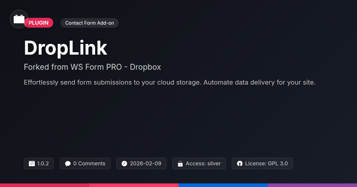 GrootMade is NOT affiliated with WS Form PRO - Dropbox or its original author. WS Form PRO - Dropbox™ is a trademark of its respective owner and use of it does not imply any endorsement or affiliation. This product has been forked under the GNU General Public License (GPL) and all non-GPL assets (such as proprietary images, fonts, and branding) have been removed. Distributing GPL-licensed code is 100% legal.
