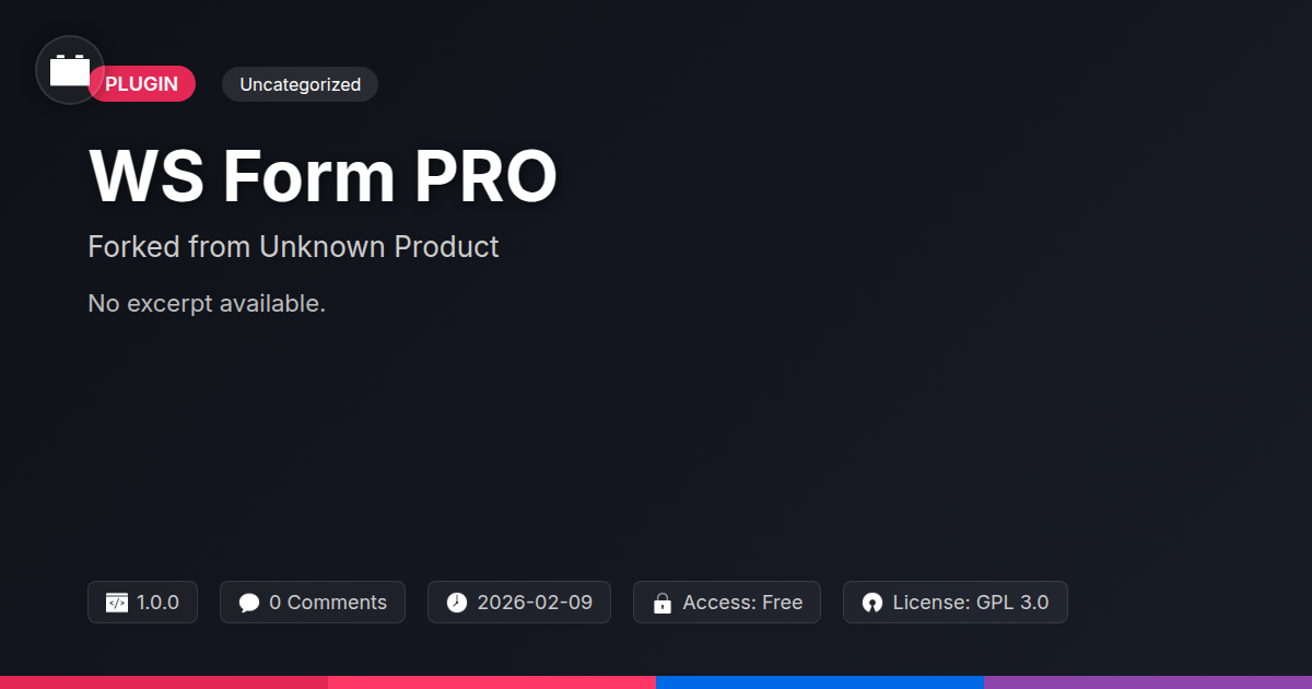 GrootMade is NOT affiliated with WS Form PRO - PayPal Checkout or its original author. WS Form PRO - PayPal Checkout™ is a trademark of its respective owner and use of it does not imply any endorsement or affiliation. This product has been forked under the GNU General Public License (GPL) and all non-GPL assets (such as proprietary images, fonts, and branding) have been removed. Distributing GPL-licensed code is 100% legal.