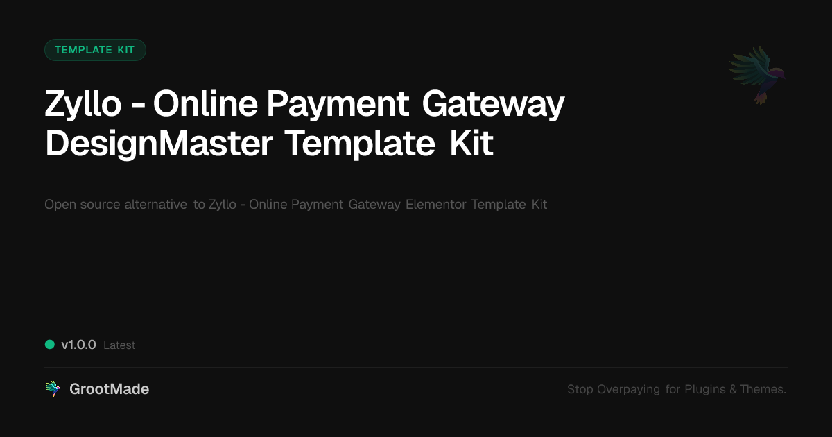 GrootMade is NOT affiliated with Zyllo - Online Payment Gateway Elementor Template Kit or its original author. Zyllo - Online Payment Gateway Elementor Template Kit™ is a trademark of its respective owner and use of it does not imply any endorsement or affiliation. This product has been forked under the GNU General Public License (GPL) and all non-GPL assets (such as proprietary images, fonts, and branding) have been removed. Distributing GPL-licensed code is 100% legal.